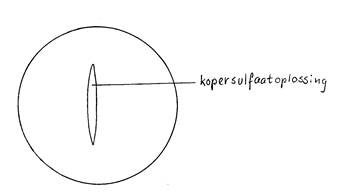 is een gleufje gemaakt waarin wat kopersulfaatoplossing wordt gegoten.