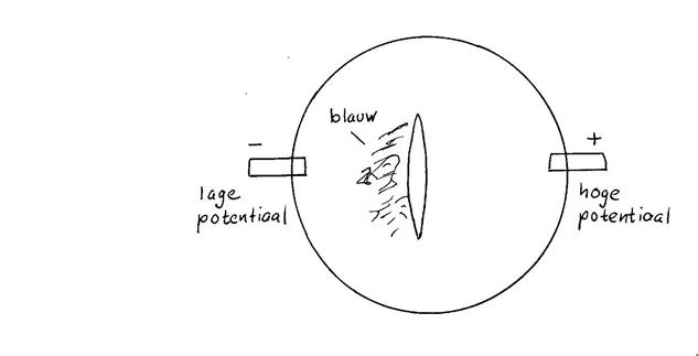 Gelijkspanning circa 10 -15 Volt (een hogere spanning versnelt )